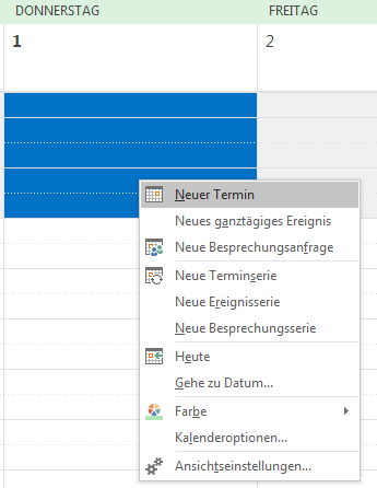 Einen neuen Termin mit Hilfe eines Doppelklicks auf die Zeitskala des Kalenders erstellen