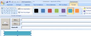 Um einen Button direkt in Outlook zu erstellen, kann man die Form-Funkion benutzen. Diese findet man unter dem Tab „Einfügen“ in der Menü-Leiste. Für Buttons würde sich ein „abgerundetes Rechteck“ gut eignen.