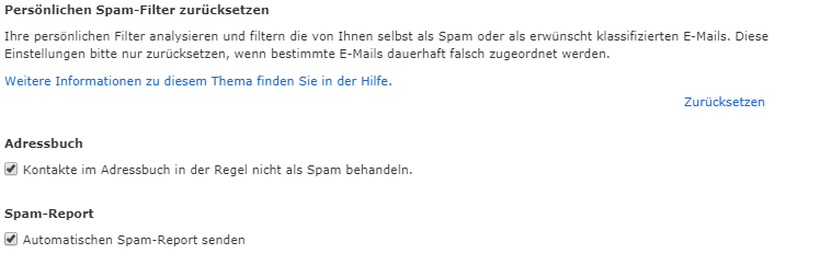 Hier kann nun der beiden Eintrag „Automatischer Spam-Report senden“ gewählt oder abgewählt werden.