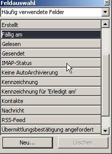 2. Rechtsklick auf die "Sortieren nach"-Leiste, "Feldauswahl" anklicken.