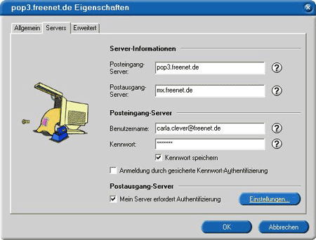 Wenn Sie sich nicht über freenet.de ins Internet einwählen ist es erforderlich, dass Sie die SMTP-Authentifikation aktivieren. Tun Sie dies wie folgt: Klicken Sie im Bereich