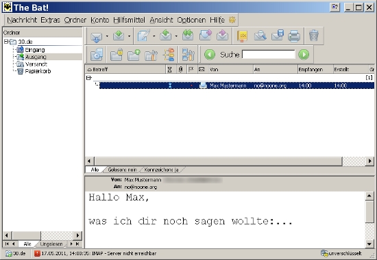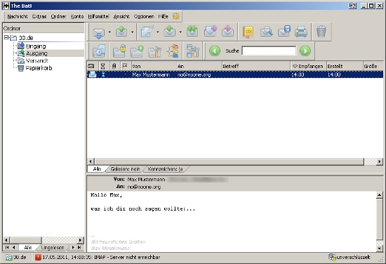 Damit hat man den Schriftgrad für die zu lesenden wie auch für die zu verfassenden E-Mails seinen Vorstellungen entsprechend angepasst. Auf diesem Weg kann man viele Elemente der angezeigten E-Mails in TheBat verändern, einfach mal im Pulldown-Menü "Elemente" die entsprechenden E-Mail-Elemente anwählen und verändern. Nach einem Klick auf "OK" sollten die Einstellungen übernommen werden.