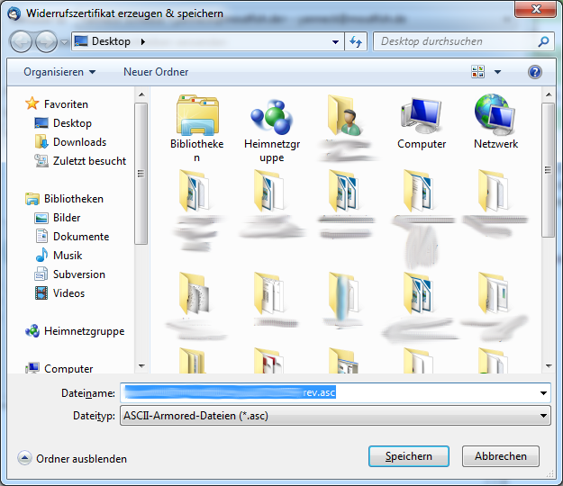 Nun muss ein Speicherort für das Widerrufszertifikat ausgewählt werden.