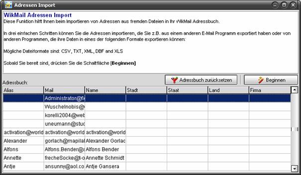öffnen. Gehen Sie in das Menü Datei/Importieren/Adressbuch.