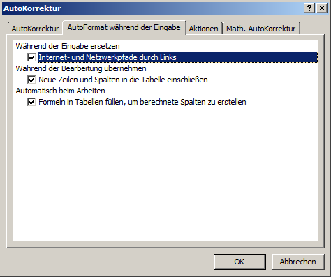 Automatisches Hyperlink-Feature abschalten