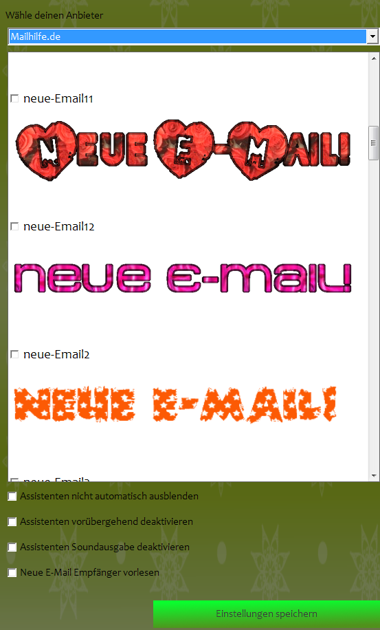 - Assistent kann nun ohne Sound angezeigt werden oder mit einer Ausgabe bei neuen E-Mails des letzten E-Mail Absenders