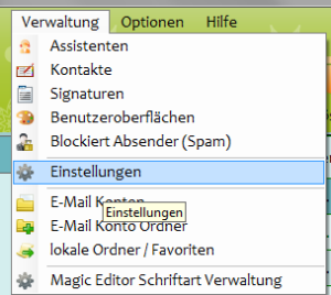 Fragen zur Einrichtung Ihres E-Mailkonto stellen Sie bitte in unserem Forum. - Grundeinstellungen vornehmen über „Verwaltung“ – „Einstellungen