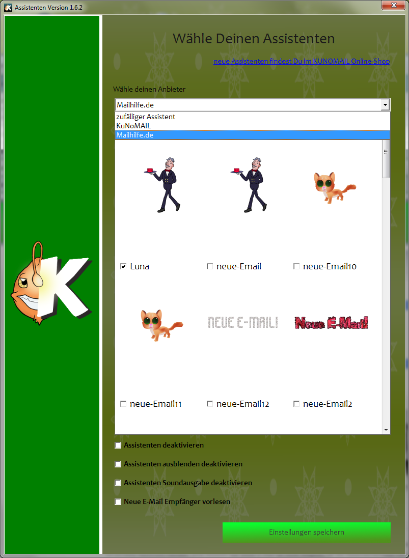 Sie können im OnlineShop von KuNoMail eine ganze Reihe an Assistenten auswählen.