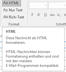 Ein Klick auf diese Infobar wandelt die Nachricht zurück in das HTML-Format um.